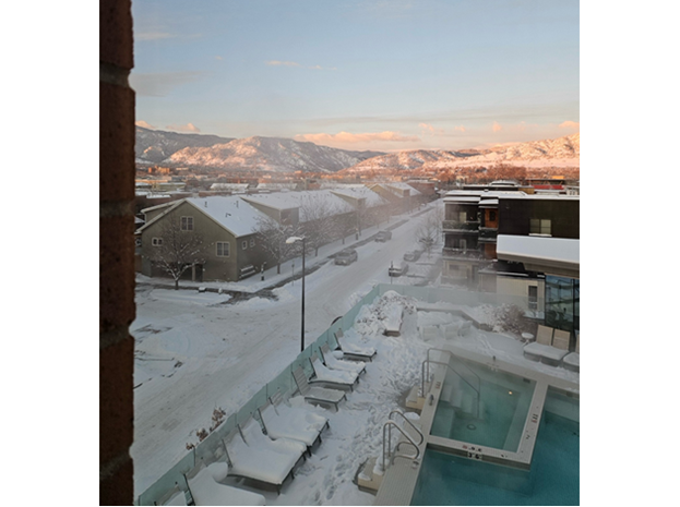 州都デンバーはキラキラした高層マンションが立ち並びエンターテイメントも豊富な大都会である一方で(野球やバスケットボールもここへ観に行きます),ボルダーはロッキー山脈の眺望をとても大切にしている街で,17m(55フィート,4階建ほど)を超える建物は一切禁止されています(図1-2).