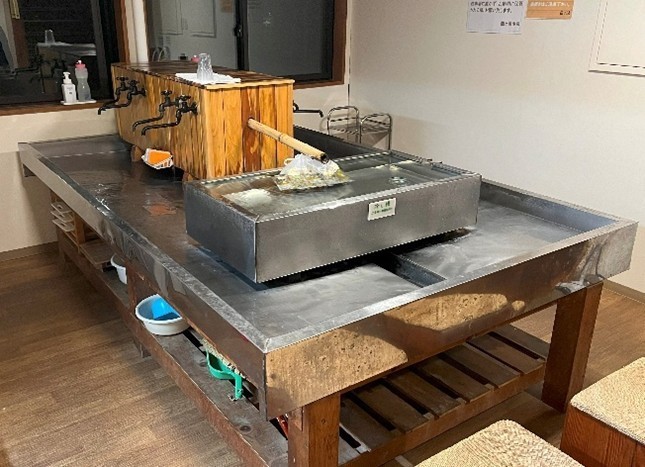 食事もして、お風呂に入ったら、館内の探検です。酸ヶ湯温泉旅館は湯治場から始まって、建物が継ぎ足しで作られているので、全くの迷路です。ちょっとした休憩室、談話室がいくつかあります。廊下沿いに小ぎれいなトイレや洗面所、缶ビールなどを冷水で冷やす“冷やし槽”もありました。袋に入れて冷やしているビールがありましたが、日本の文化、持っていかれちゃうことは無いのでしょう。