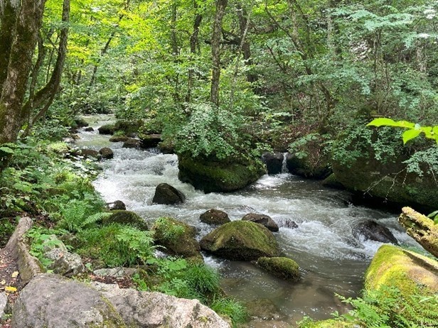 仕事や、天龍村での農作業にかこつけて旅をしていますが、ここ数年、妻とは避暑旅が恒例となっています。3年前と去年は知床半島を中心とした道東(山本先輩の男旅と類似)、2年前は箱根の芦ノ湖に行きました。最近、夏は北海道も暑いので、積雪量日本一の酸ヶ湯(すかゆ)温泉に目を付け、今年は早々と酸ヶ湯温泉旅館を予約しました。今回は8月18日からの二泊三日の避暑旅です。雨に降られた時間帯もありましたが、酸ヶ湯はエアコンなしで涼しく、せせらぎの音と共に癒されました。